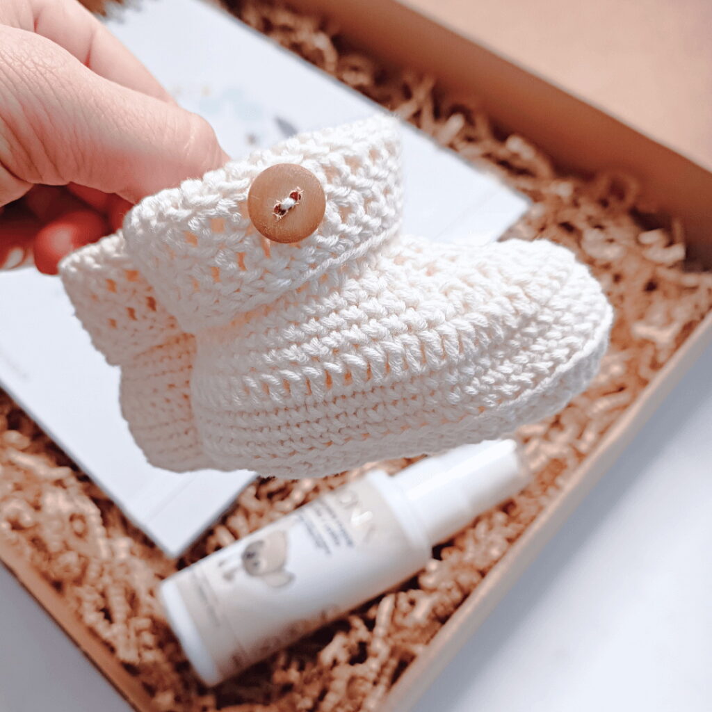 Copatke za tople nogice, negovalno kremo za ritko, da bo čas v plenicah bolj prijeten, in album za shranjevanje spominov na prvo leto.